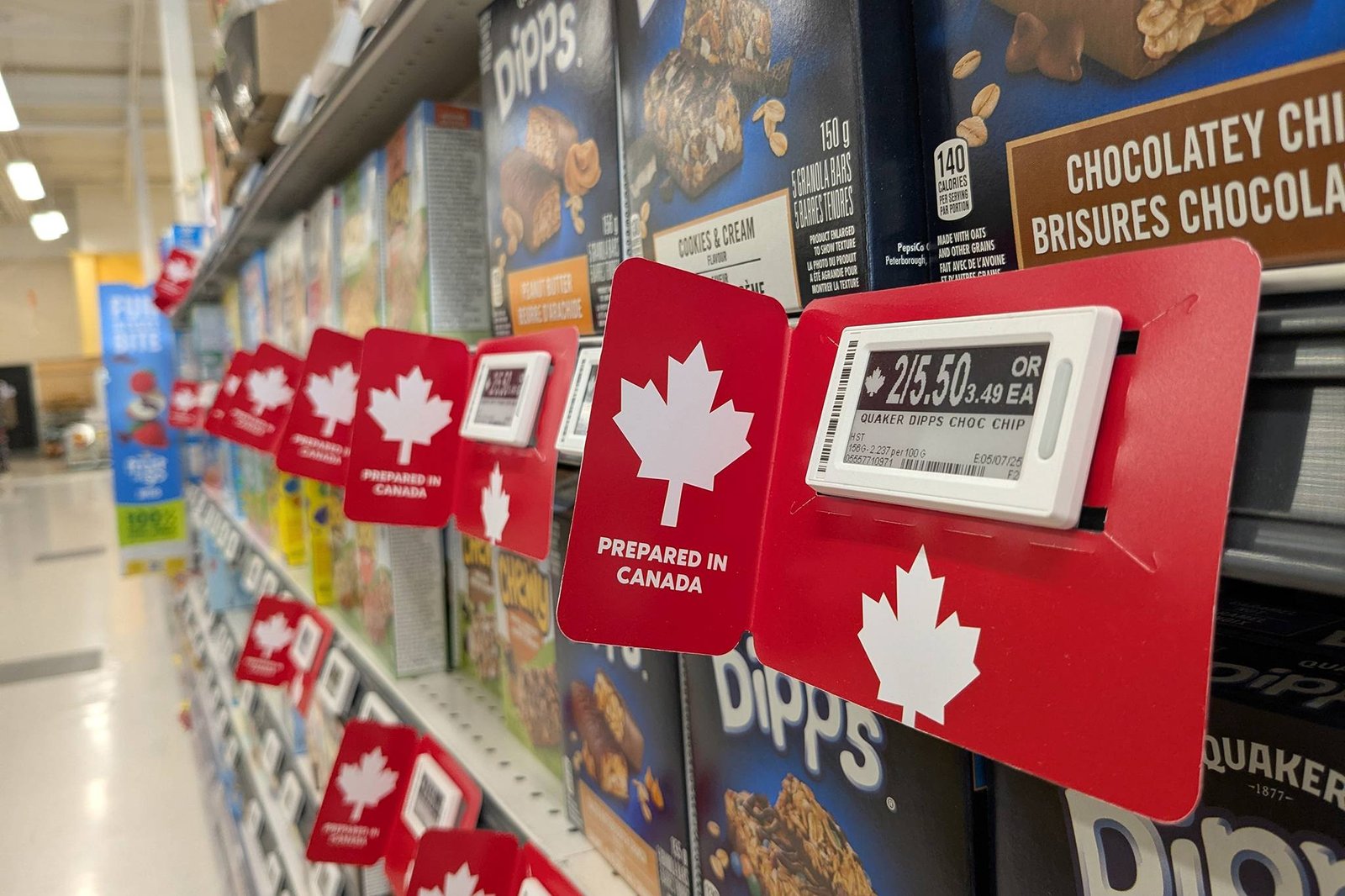 Gigantes del sector como Loblaw, Sobeys y Metro respondieron a los llamados, prometiendo promover los productos hechos en Canadá en medio de los aranceles, identificándolos con símbolos de hoja de arce o etiquetas de “fabricado en Canadá”.